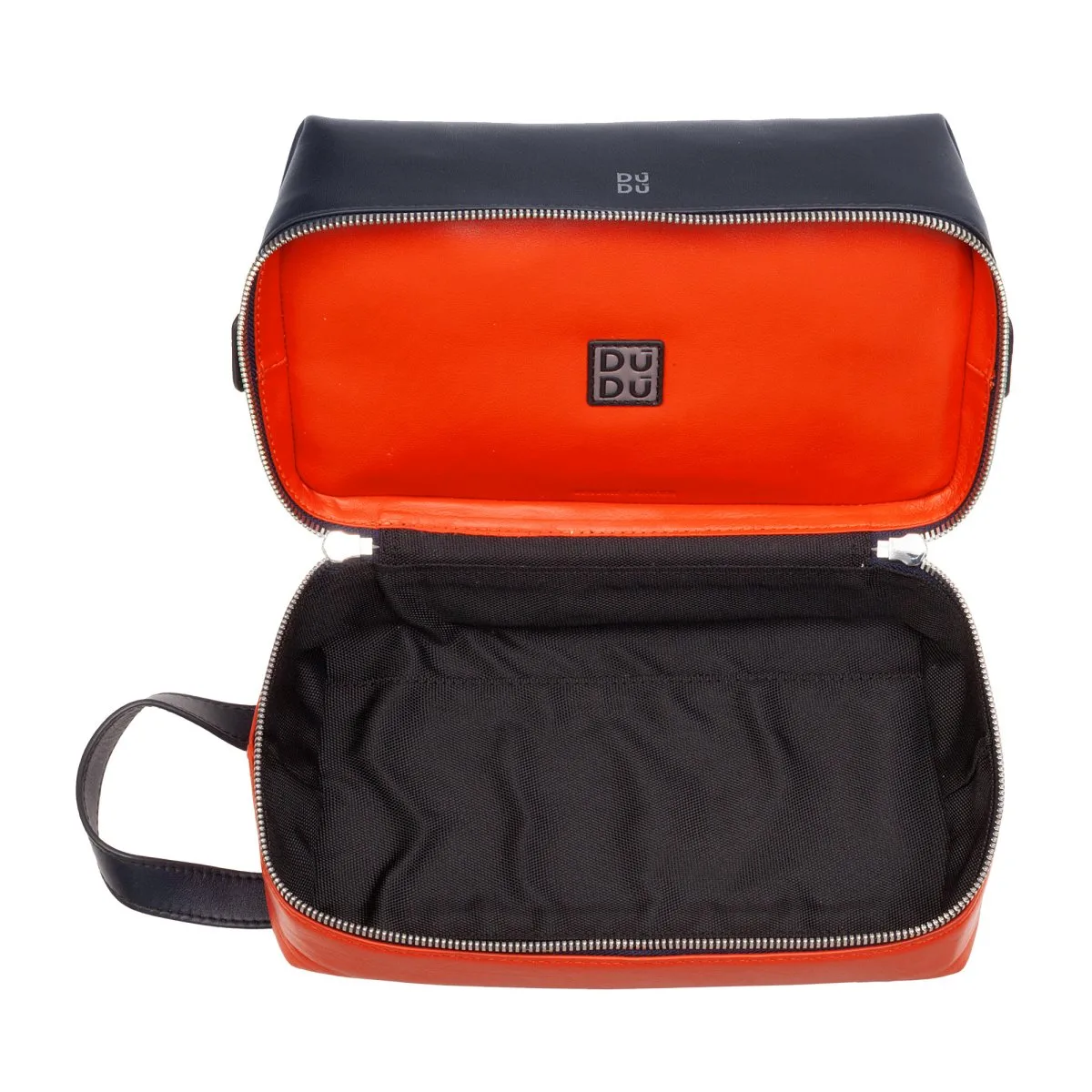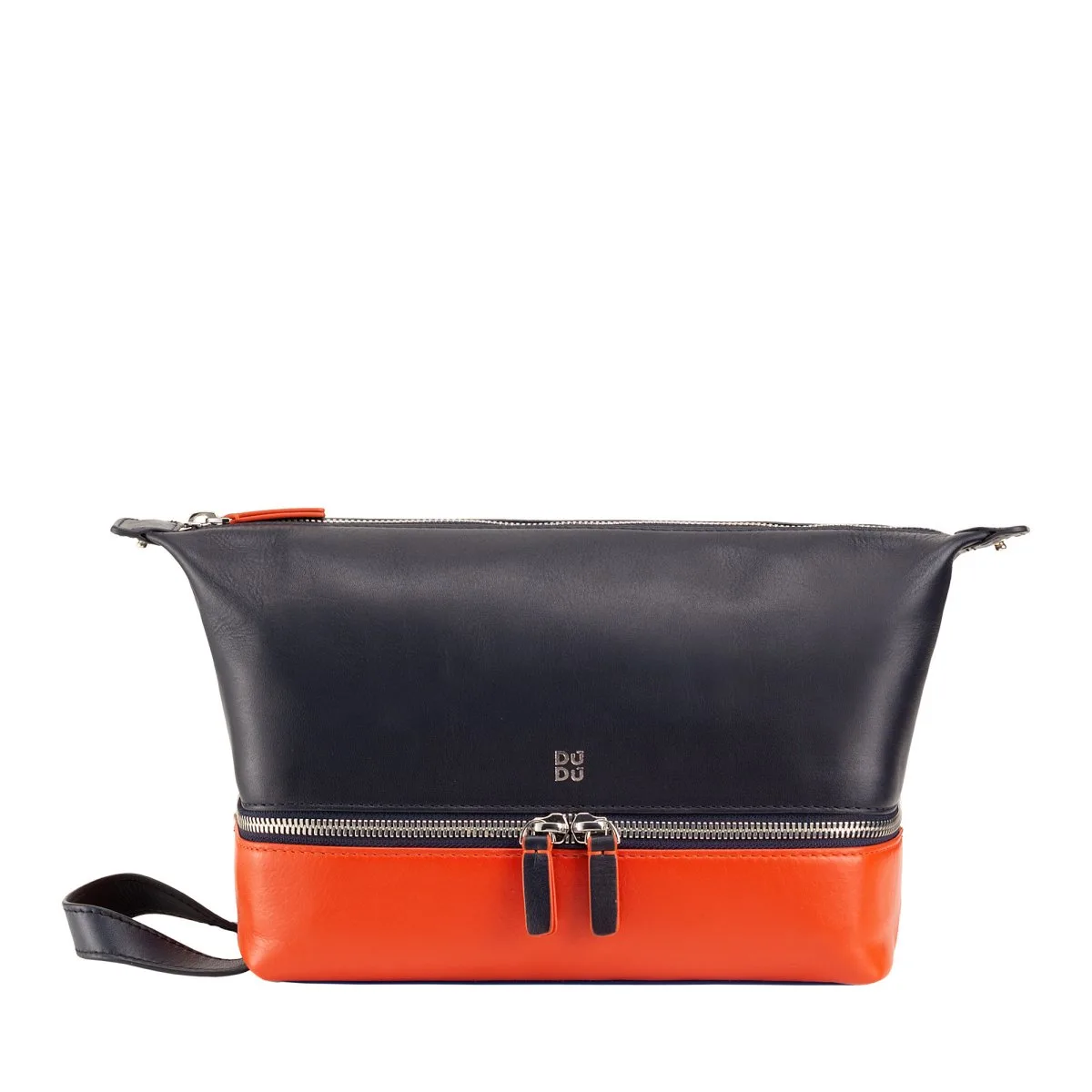 Dieses elegante Necessaire hat einen Doppelreißverschluss und ein wasserabweisendes Nylonfutter, das sich mit einem feuchten Tuch leicht reinigen lässt. Ein kompakter und dennoch geräumiger Kulturbeutel für Vielreisende: Das Volumen lässt sich durch die praktischen, verschließbaren Seiten dem Bedarf entsprechend anpassen. Allgemeine Ausstattung: 2 Fächer mit Reißverschluss, Griffhöhe: 6 cm