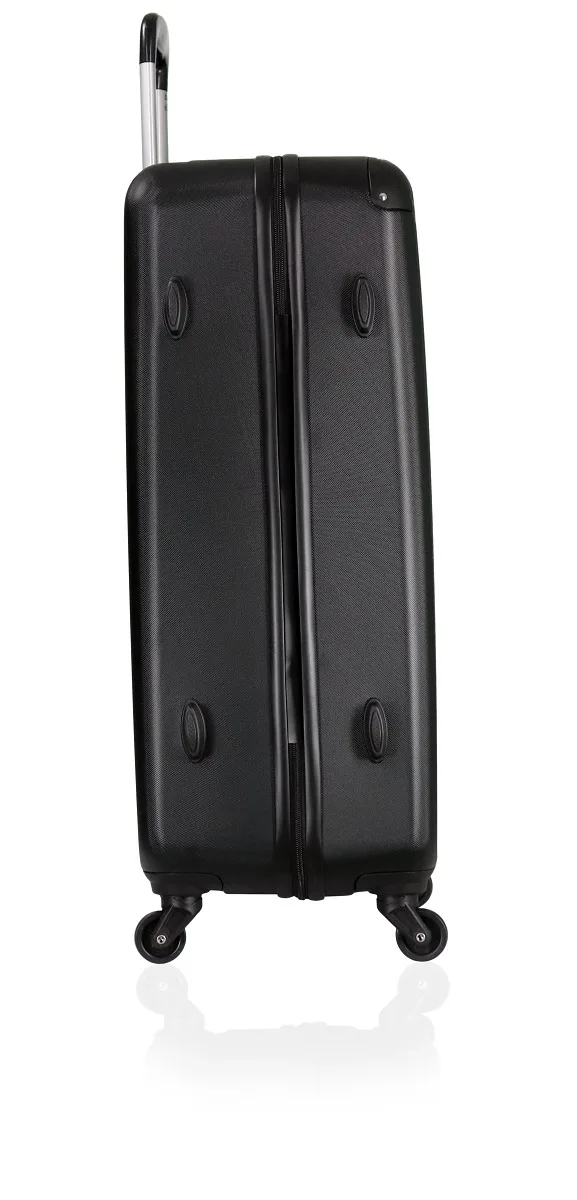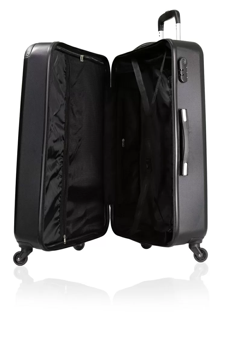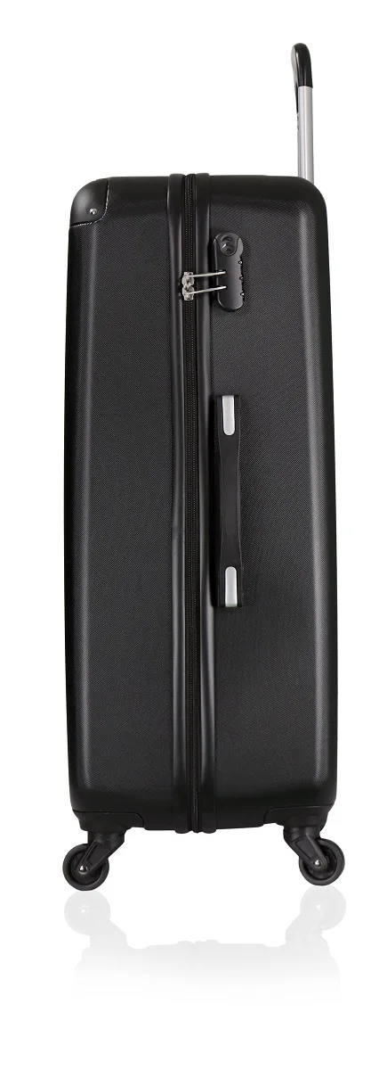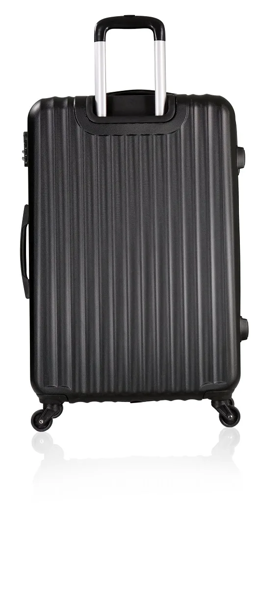 Schlichter Trolley mit folgenden Vorzügen: 4 Rollen, innen einseitig verschliessbar mit Reissverschluss, Innentaschen, Packgurte und Zahlenschloss. (Symbolbilder in Grösse L)