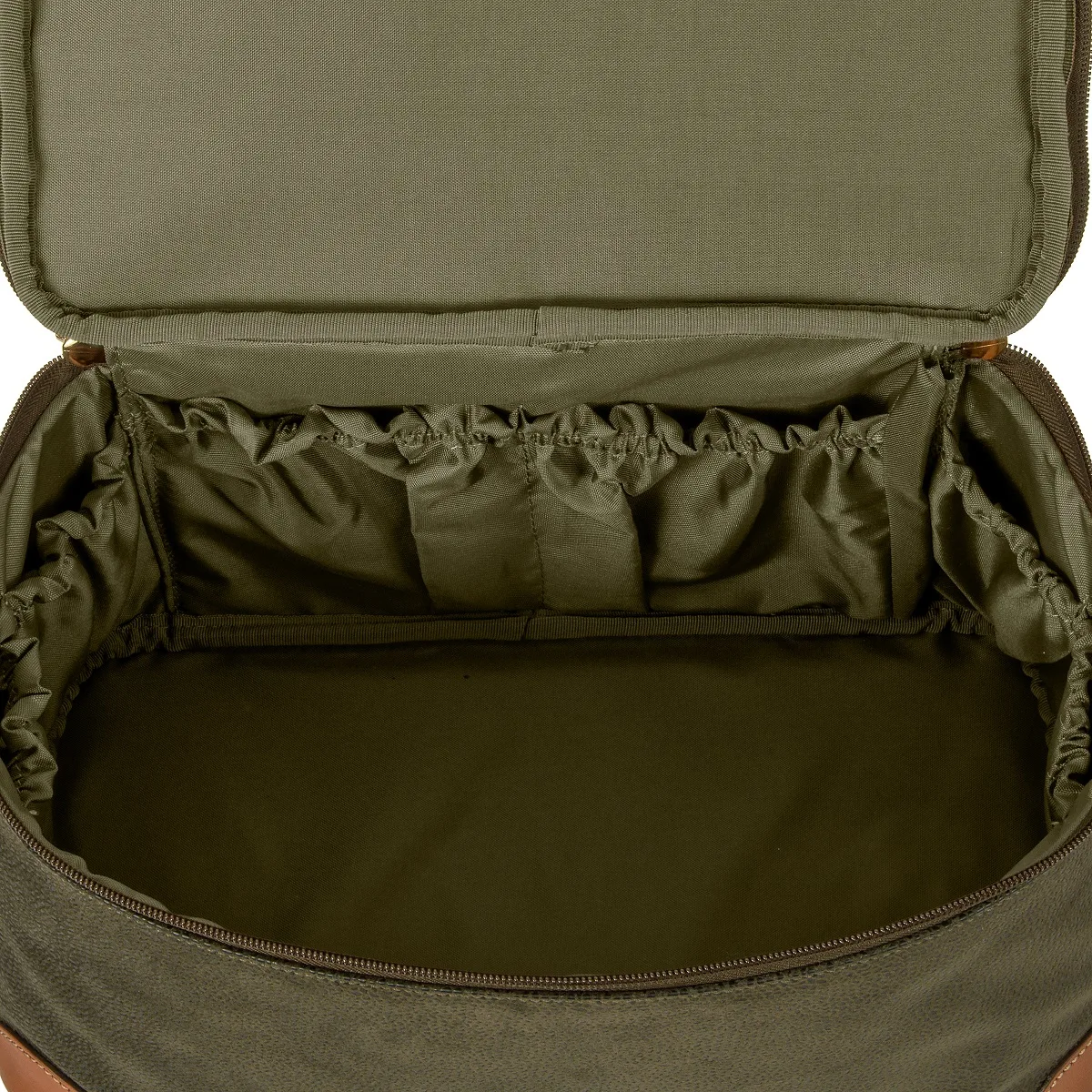 Das erste obere Fach mit Reißverschluss; zentraler Reißverschluss, der das zweite Fach öffnet; mit Riemen hinten, mit dem die Tasche für einen einfacheren Transport am Trolleygriff festgemacht werden kann; ein praktischer verstellbarer Schulterriemen wird mitgeliefert; Standfüße. Das untere Fach verfügt über praktische elastische Taschen an den Seiten.