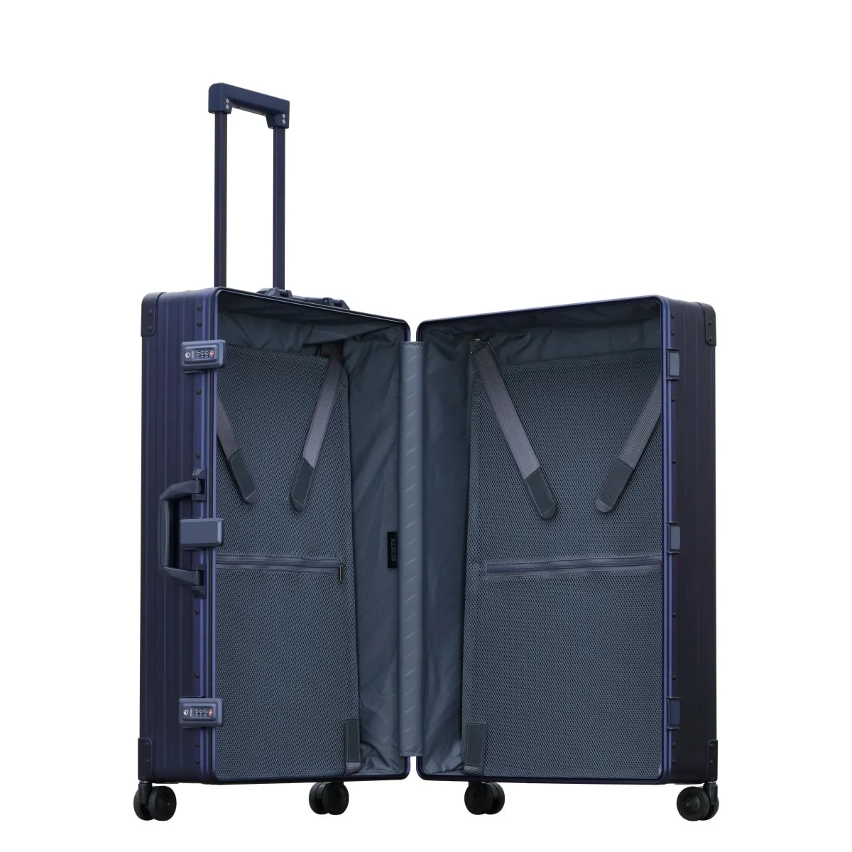 Dieser äusserst robuste Trolley besteht aus Flugzeugaluminium, das besonders langlebig und leicht ist und mit seiner genieteten Konstruktion sowie doppelt verstärkten Ecken für zusätzliche Stabilität sorgt. Zwei TSA Schlösser sorgen dafür, dass der Kofferinhalt stets sicher und geschützt bleibt. Eine eingebaute, nahtlose Gummidichtung macht das Gehäuse wasserdicht und hält Feuchtigkeit und Schmutz fern. Aleons Innenfutter ist schmutz- und wasserabweisend mit einem nicht abrasiv beschichteten Polyestergewebe, das den Gegenständen keinen Schaden zufügt.
