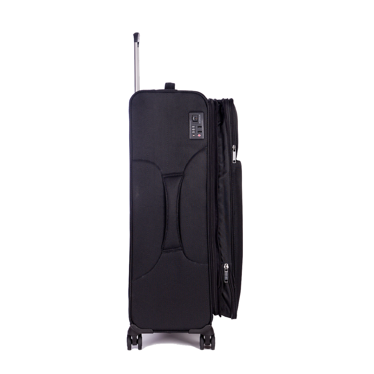 Ein leichtläufiges 4-Doppelrollensystem, getestet auf 25km, und ein ergonomisch geformter Griff, an einem 4-fach ausziehbaren Aluminium-Teleskopgestänge, lassen den super leichten STRATIC LIGHT+-Koffer, Größe L, sehr komfortabel führen und auch voll bepackt ist er so sehr wendig und leichtläufig. Das sehr geräumige Hauptfach des STRATIC LIGHT+ ist mit fein gewebtem Polyester und einem hochwertigen Reißverschluss mit Metallanfasser ausgestattet. Im Kofferinnenraum befinden sich ein großzügiges Hauptfach mit hoch belastbaren Kreuzspanngurten sowie ein Reißverschluss-Netzfach im Deckel des Koffers für flache Utensilien. Für höchstes Packvolumen ist der STRATIC LIGHT+ in Größe L über einen zusätzlichen Reißverschluss am Deckelfach noch größentechnisch erweiterbar. Die Ausstattung mit einem TSA-Schloss für Reisen in die USA und Großbritannien ist selbstverständlich. Es ist durch den Zoll einfach ohne Aufbruch zu öffnen. Tragegriffe sind an der Kofferoberseite und seitlich des Koffers vorhanden. Neu ist die Ausstattung mit dem STRATIC CONNECT NFC-Chip.