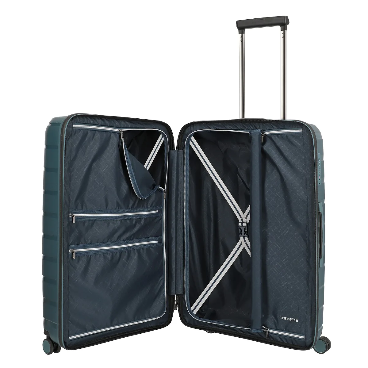 - Beidseitige Packwände mit zusätzlichen Reißverschlusstaschen