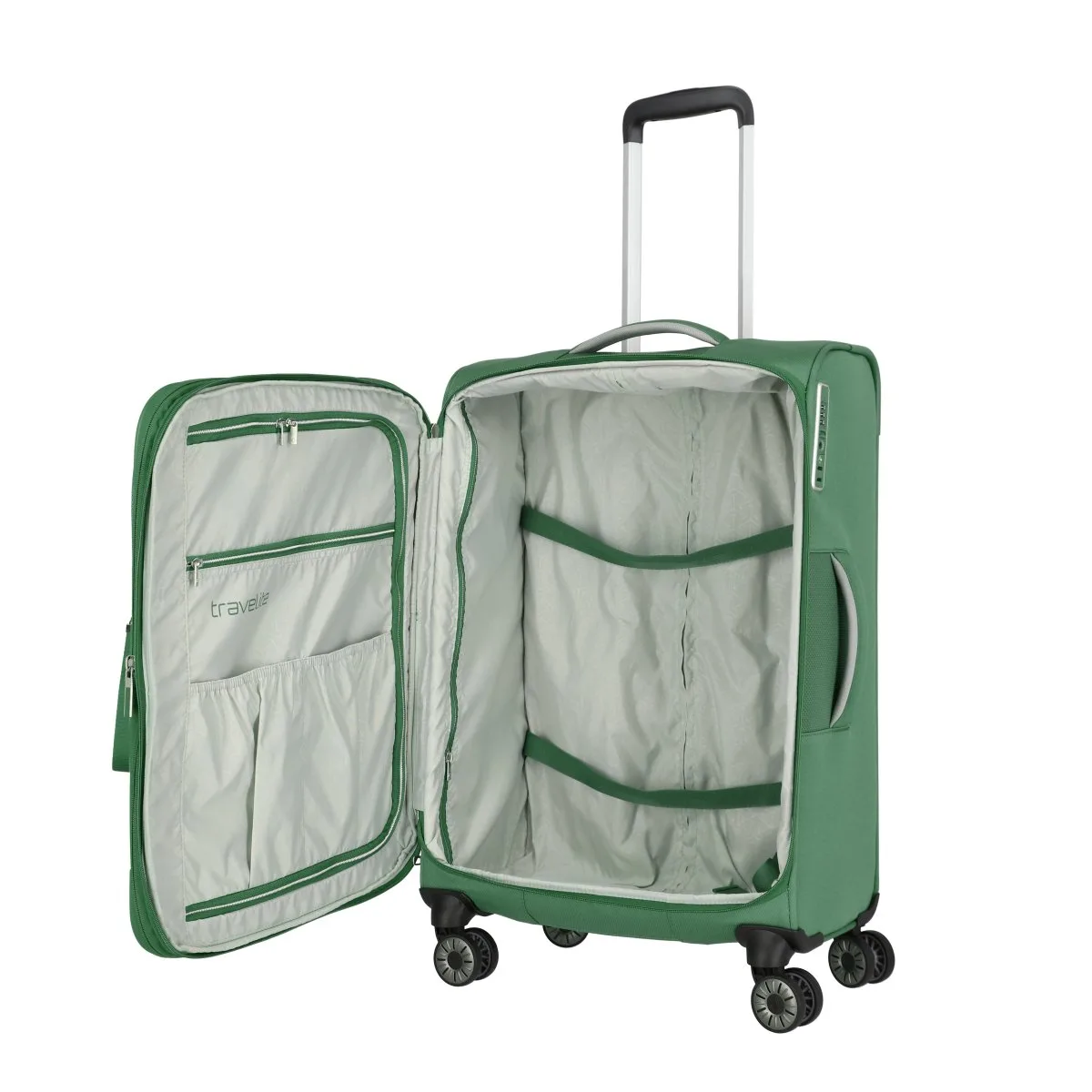 Der mittelgrosse Trolley zeichnet sich vor allem durch die robusten Kanten aus. Der Koffer ist mit einem geräumigen Hauptfach mit zwei Packgurten, Nebenfächern und einem Aussenfach ausgestattet. So sind Ihre Reiseutensilien jederzeit sicher und geschützt verstaut. Sollten Sie nicht ausreichend Platz haben so kann der Koffer mit ein paar wenigen Handgriffen erweitert werden. Der Trolley verfügt über ein versenktes TSA-Zahlenschloss, welches für Einreisen in die USA oder Kanada essentiell ist. Der Koffer lässt sich dank den 4 Doppelrollen, der arretierbaren Leichtmetall-Teleskopstange und den ergonomischen Oberhand- und Seitenhandgriffen angenehm transportieren.