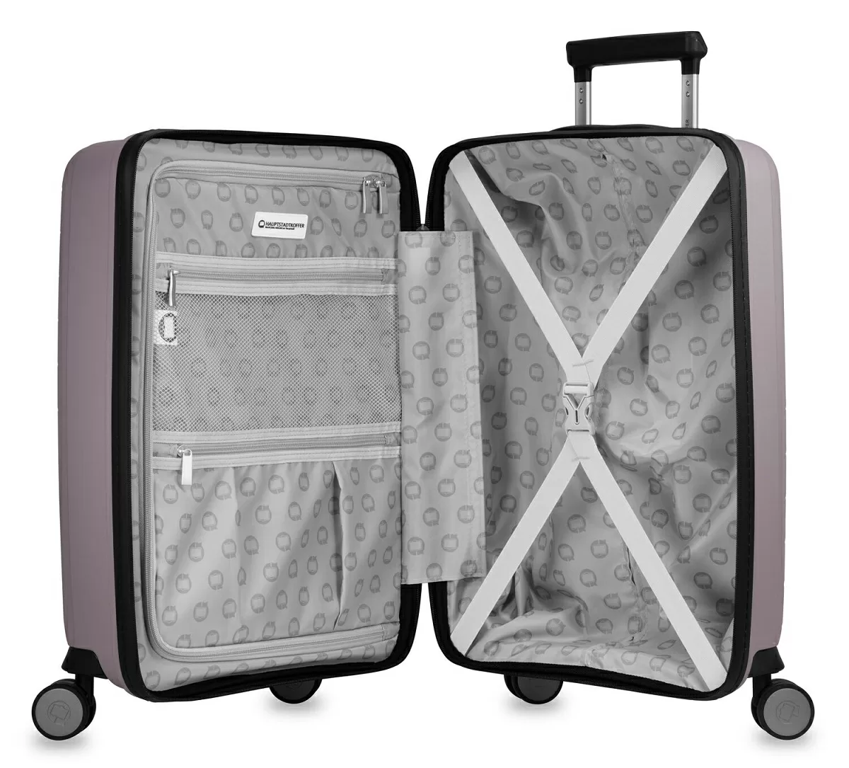 – Praktisches Interieur: Ein elastischer Kreuzspanngurt stabilisiert das Reisegepäck. Der Zwischenboden mit Reißverschluss (+ 1 x RV-Netztasche, 1 x RV-Tasche für Utensilien) teilt den Koffer in zwei Kompartiments. Der Innenraum ist mit reißfestem Polyester ausgekleidet und äußerst pflegeleicht.
